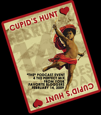 Welcome to this special Edition of The Sunday Soundtrack entitled Cupid’s Hunt 2009: A Valentine’s Day Chill. This is the 2nd Annual Cupid’s Hunt Valentine’s Day Podcast and the brainchild of a one Mr Todd Grundy of the Rhythms In Black Satin Podcast. Last year’s podcast was a great success and we all hope to bring that same success back again. Me, I’m bringing tracks in my regularly scheduled chilled format with just a hint of R&B flavoring. That being said…here is the playlist: